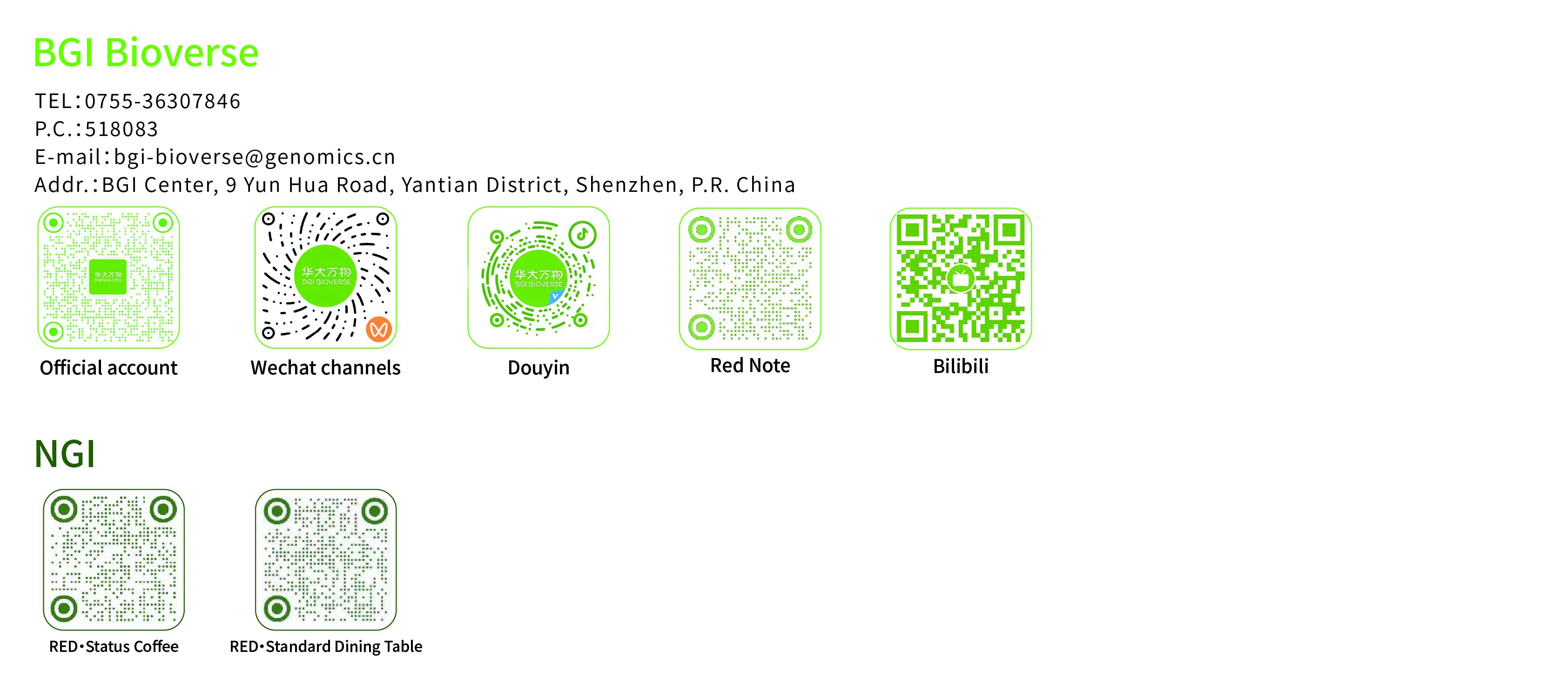 BGI Center, Yunhua Road NO.9 Meisha Street, Yantian District, Shenzhen, Guangdong Province, 518083