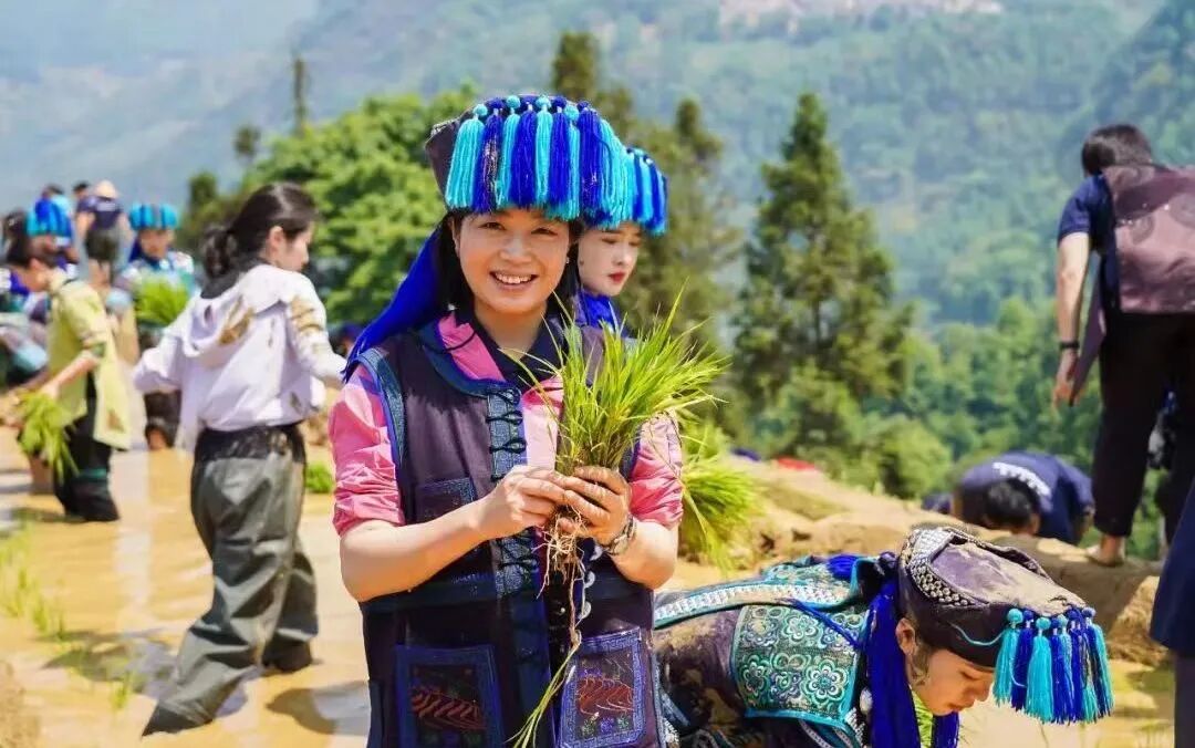 After the launch ceremony, the guests proceeded to Luosi Terraces in Panzhihua Township to watch the Kaiyangmen (Rice Transplanting Kick-off) Ritual and participate in the rice transplanting experience activity.
