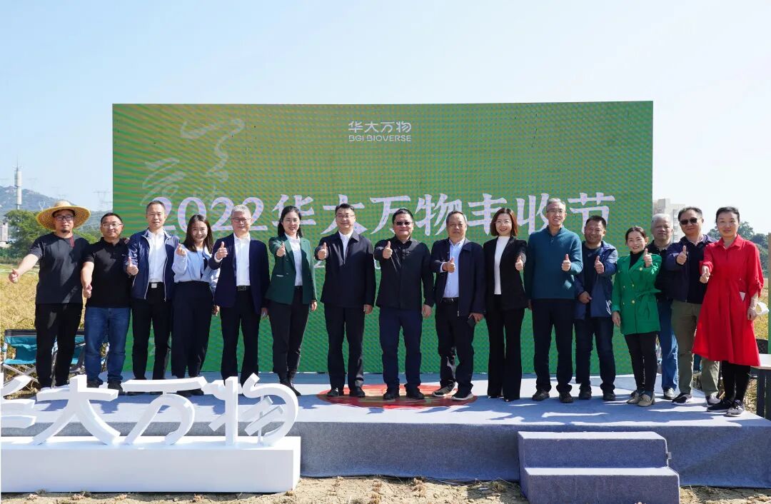 On December 10, the BGI Bioverse First Harvest Festival was held at the BGI Bioverse Experimental Base in Dapeng New District, Shenzhen. Attendees included Li Qiong, Director of the Science, Innovation and Economic Services Bureau of Dapeng New District; Zhang Yunhai, General Manager of the Science, Technology and Information Industry Department of Beidahuang Group; Wang Guirong from the Agricultural Genomics Institute at the Chinese Academy of Agricultural Sciences; Chen Qingshan, Dean of the College of Agriculture at Northeast Agricultural University; Qian Yonghua, Chief Talent Officer of Fengnong Holdings; Deng Lie, Chief Scientist of Fengnong Holdings; Wang Xinglin, Chief Agronomist of Fengnong Holdings; as well as Yin Ye, CEO of BGI Group, and Liu Huan of BGI Bioverse. Guests immersed themselves in the vibrant harvest scene amid the perennial rice fields.