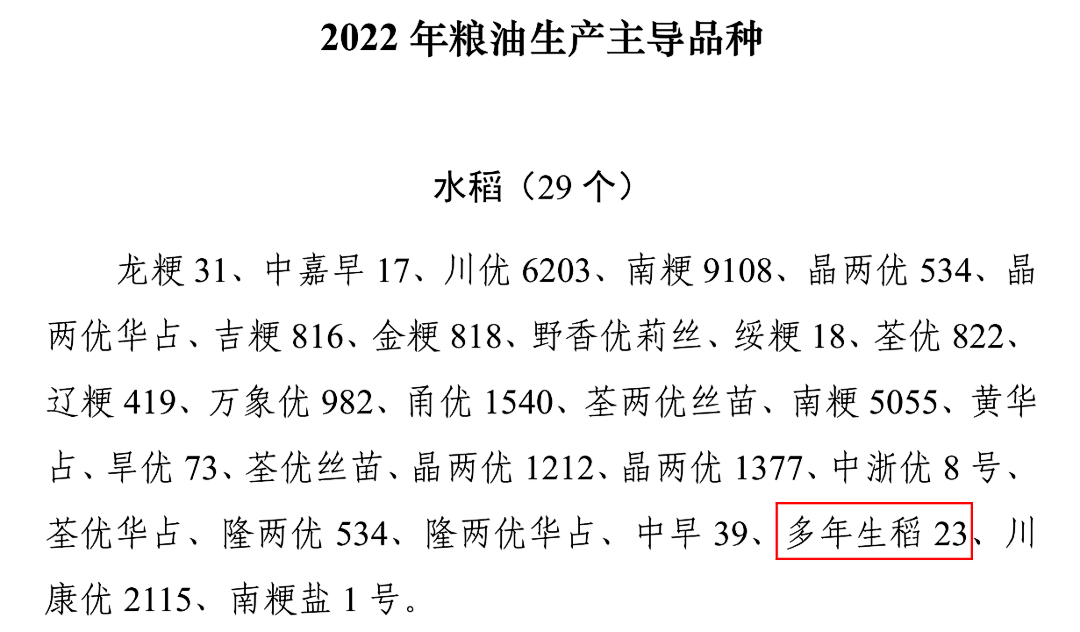 As the world’s only commercially viable perennial grain crop to date, perennial rice has previously been selected for the Food and Agriculture Organization of the United Nations (FAO) “International Agricultural Technology Innovation” list. In September this year, it was also highlighted as a key recommended rice variety in the 2022 Guiding Varieties and Core Technologies for Grain and Oilseed Production released by China’s Ministry of Agriculture and Rural Affairs (Document No. Nongban Ke〔2022〕22).