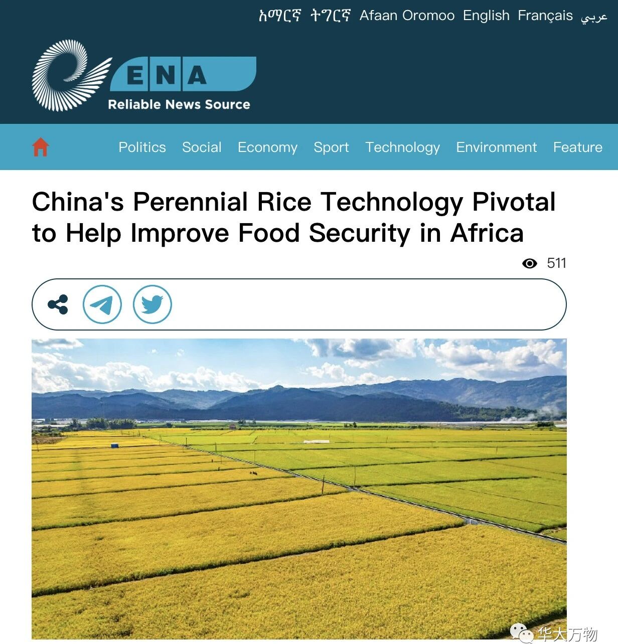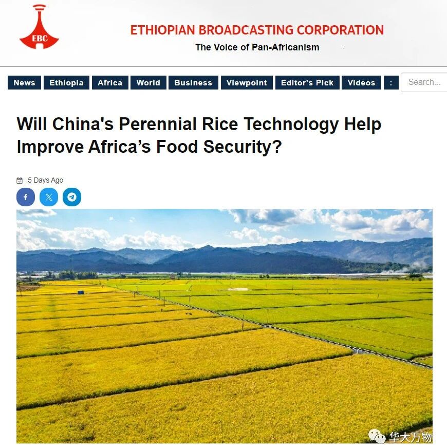 Ethiopian Broadcasting Corporation reported that, as a major agricultural nation, China has long been committed to sharing agricultural development experience and practical technologies with African countries. With the continuous advancement of China–Africa cooperation under the Belt and Road Initiative, perennial rice is rapidly taking root across the African continent.