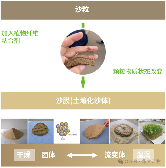 Sand Film technology is the result of interdisciplinary innovation. Starting from a mechanics perspective, Professor Yi’s team discovered a universal bonding constraint mechanism that enables sand particles (granular matter) to transition from a discrete state to a rheological state. This led to the development of plant-fiber binders and successive pilot, intermediate, and large-scale trials, culminating in successful demonstrations across tens of thousands of mu.