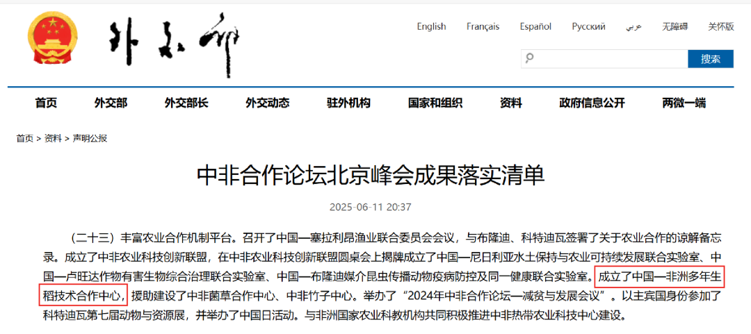 (On October 22, 2024, the China–Africa Perennial Rice Technology Cooperation Center was officially inaugurated)