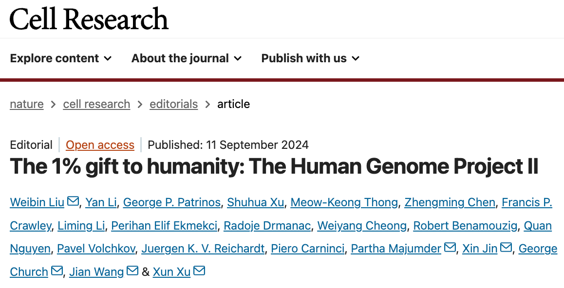 Scientists from 14 countries published an article in the internationally renowned academic journal Cell Research on the mission of HGP2.