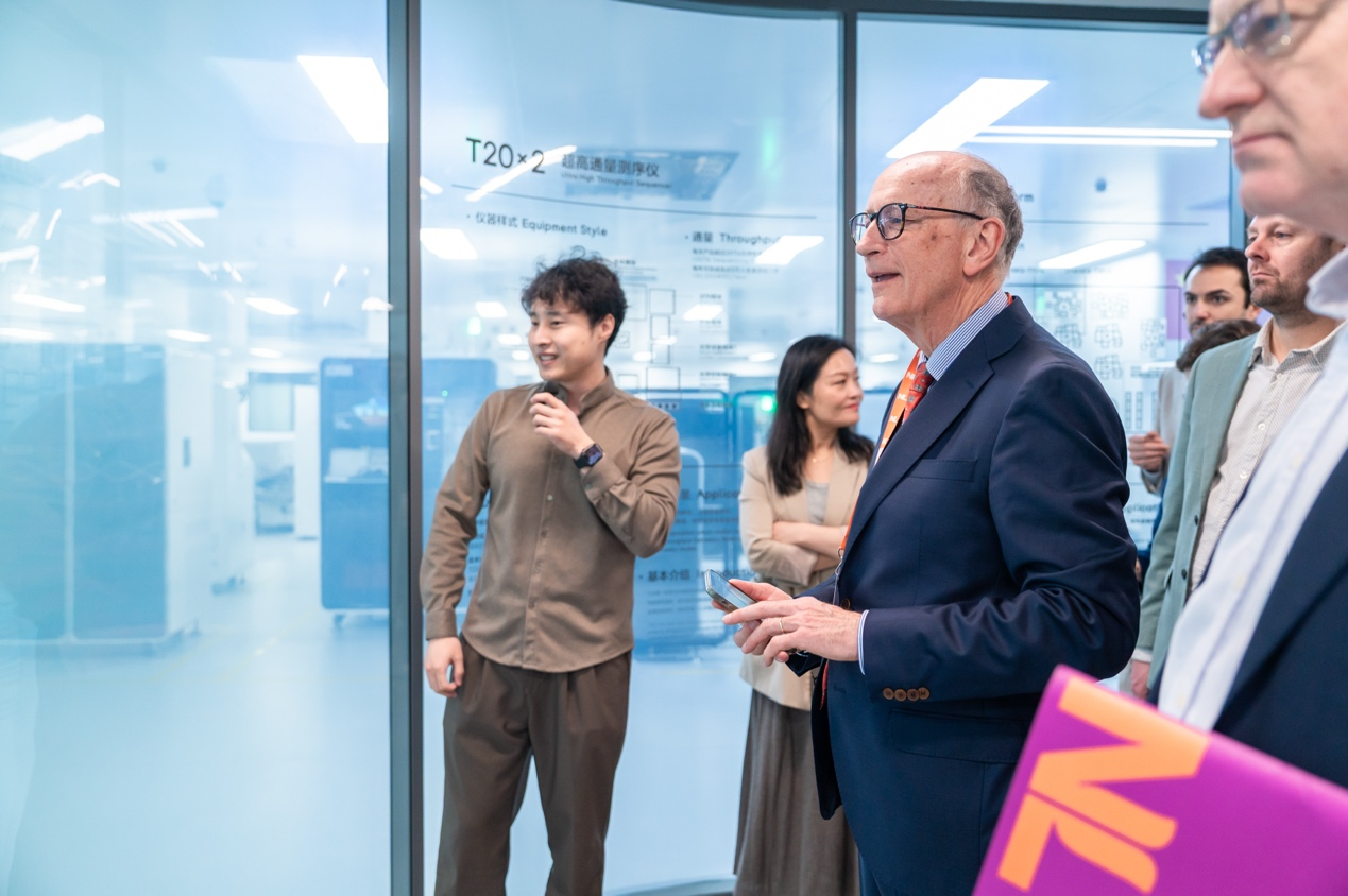 Hans Schikan led the delegation's tour of BGI's advanced technology platform.