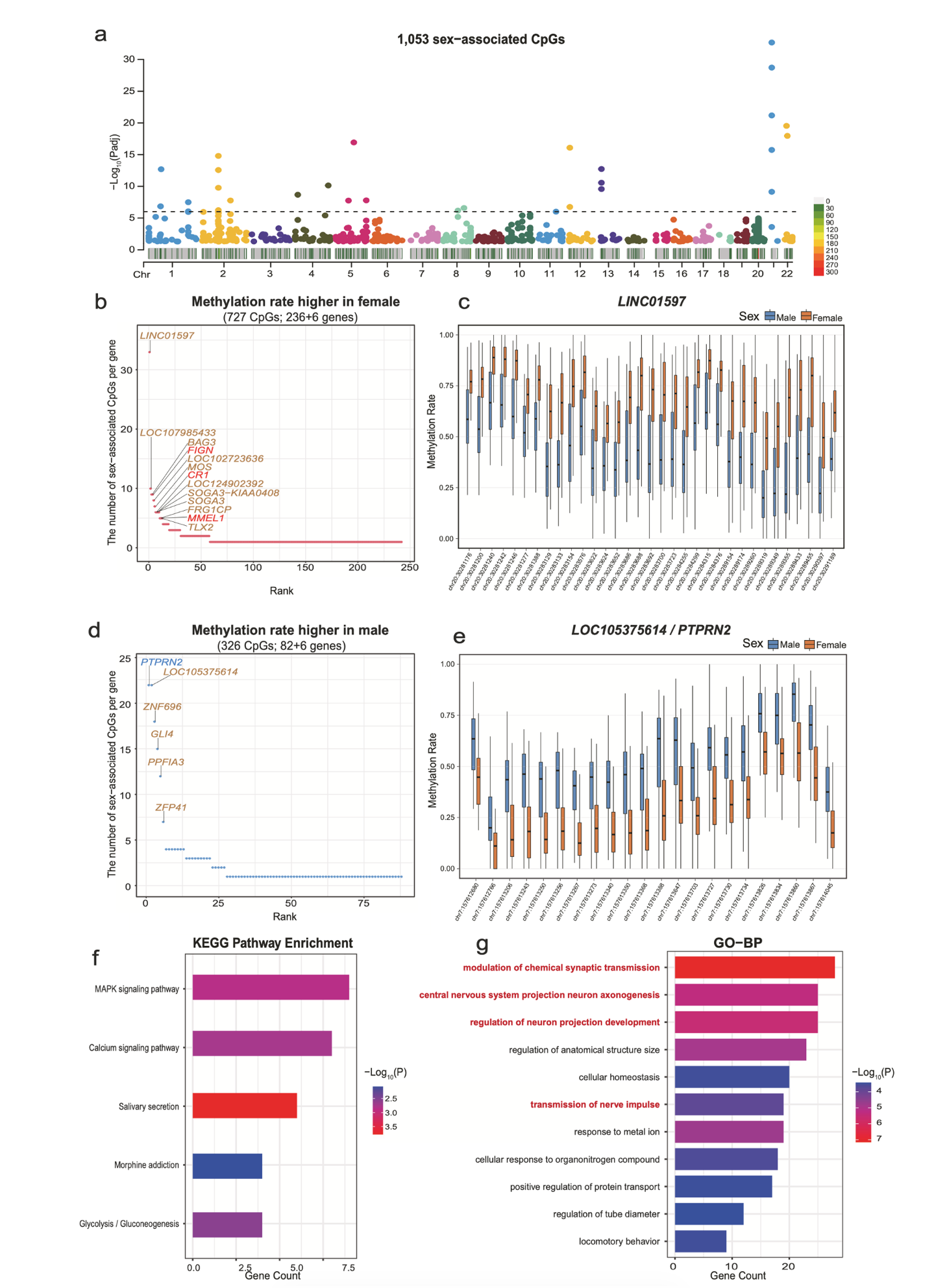 Discovery of 1,053 sex-associated CpGs linked to 324 genes involved in pathways including neural functions and metabolism, providing insights into sex-biased diseases and supporting personalized biomarker development.
