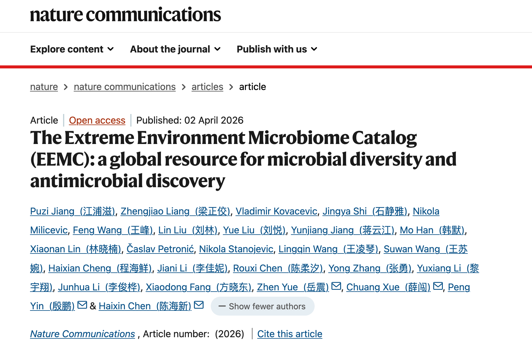The study “The Extreme Environment Microbiome Catalog (EEMC): a global resource for microbial diversity and antimicrobial discovery” was published in Nature Communications.