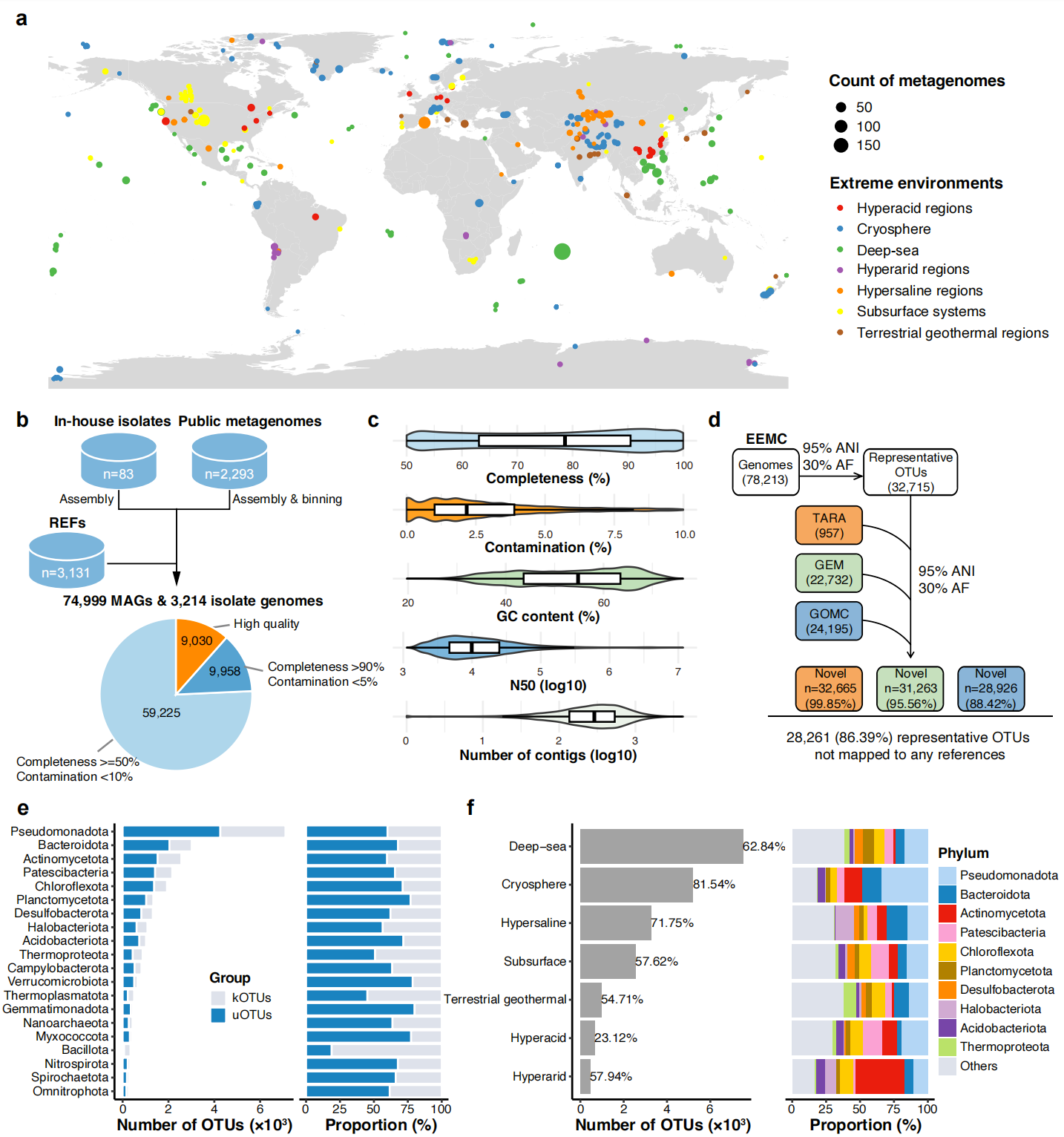 Metagenomes and isolates from seven extreme habitat categories were integrated into a global catalog, enabling large-scale cross-ecosystem comparisons of microbial diversity.